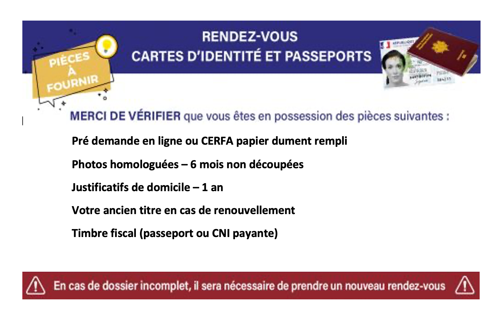 Pour les passeports et les cartes d'identités, nous vous recommandons de faire une pré-demande en ligne sur le site ANTS.